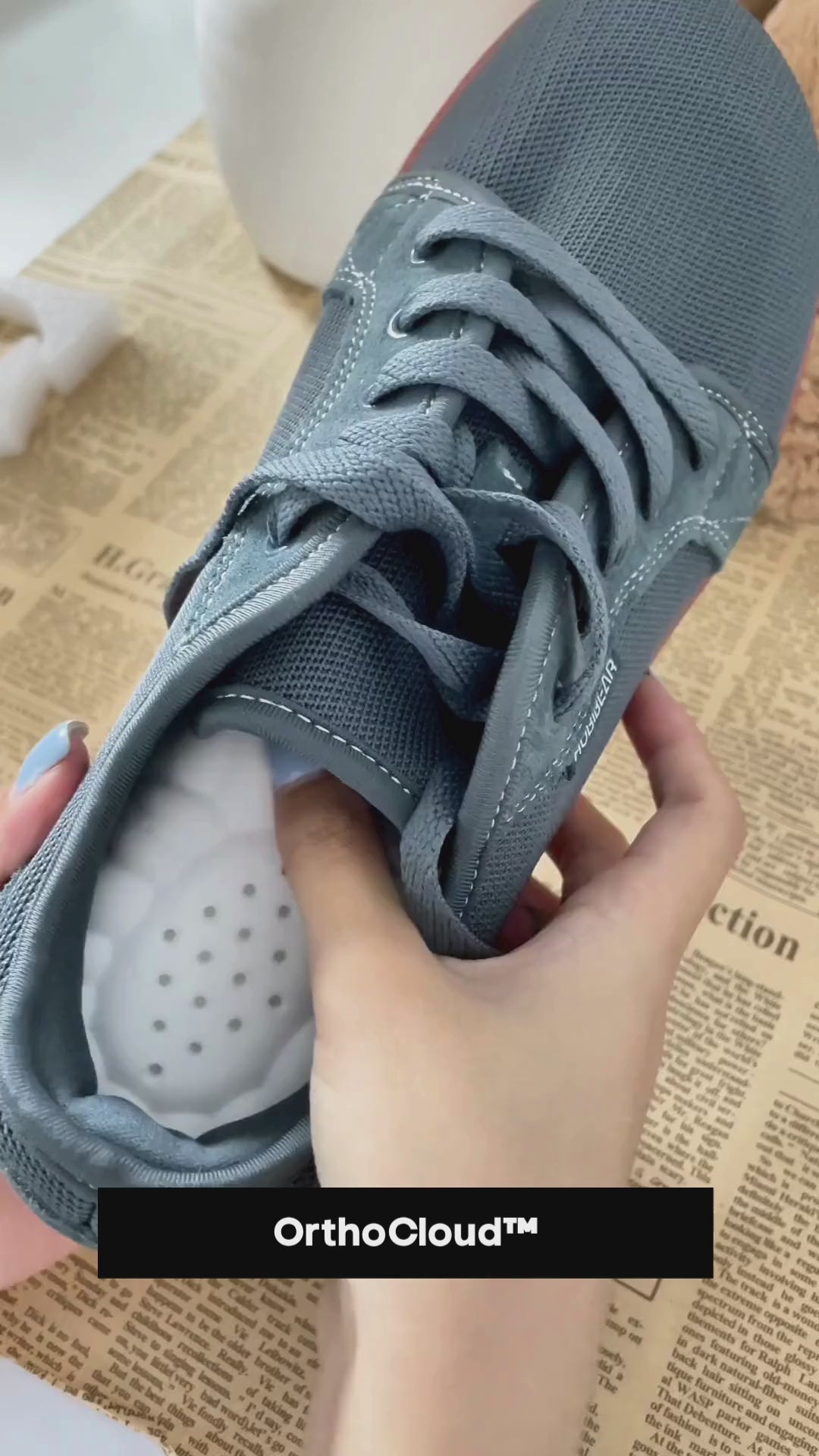 Découvrez un confort qui change votre journée, nos semelles OrthoCloud™ absorbent la pression sous le talon et soutiennent naturellement la voûte plantaire.